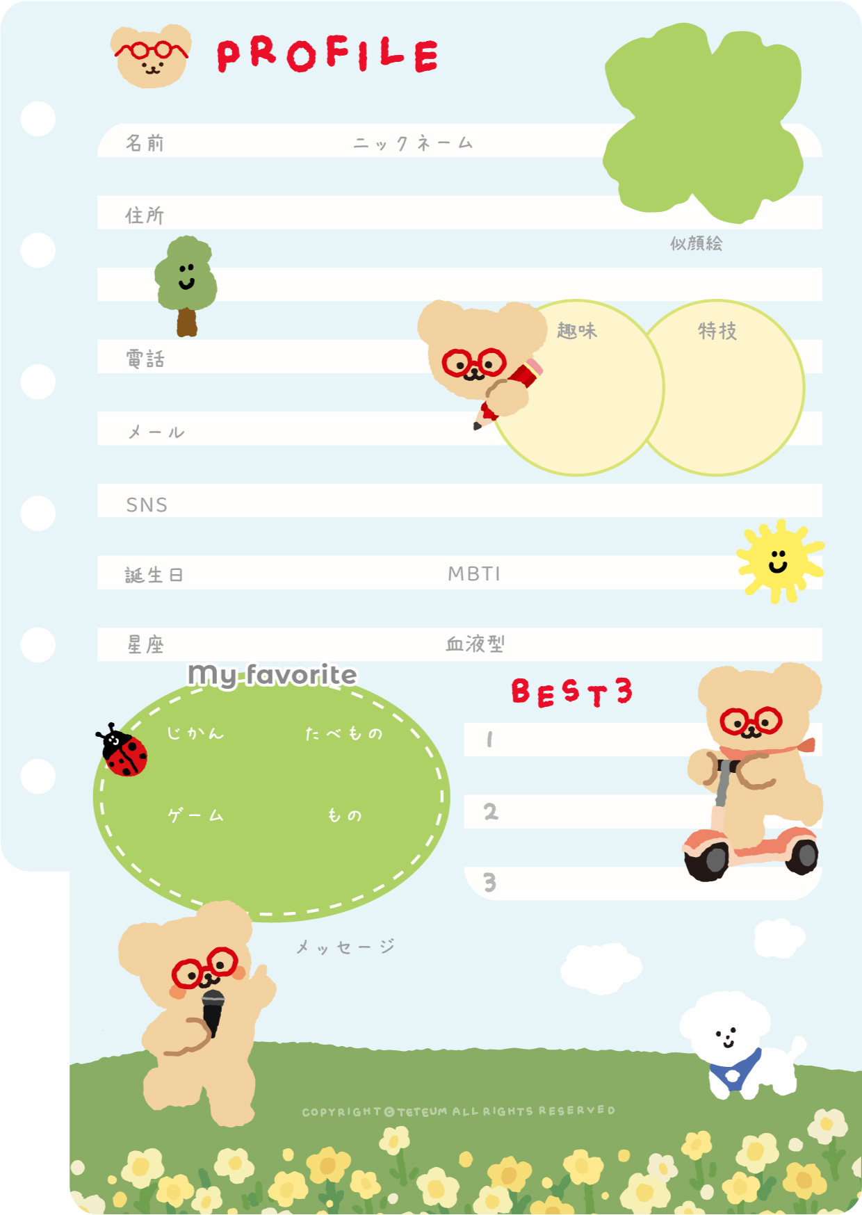 できあがったプロフィール帳は @teteum.jp をつけてぜひ投稿してください☘